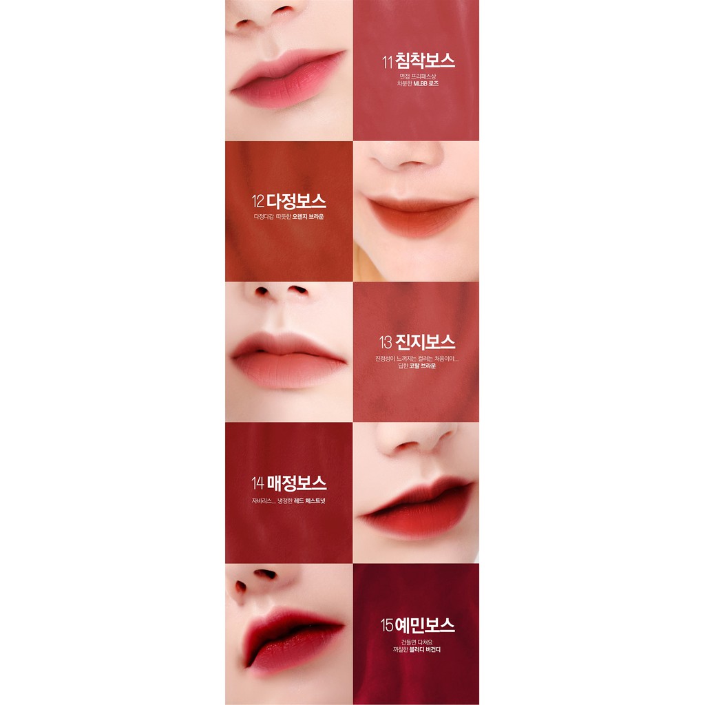 Please click recommend button of the review you choose. Bbia last velvet lip tint chill boss #14 5g. Close fit velvet texture with strong adhesion. No reviews recommended for 2 weeks. Seller very responsive and friendly :) whole transaction was fuss free, thank you! It gives you a clear and sharp lip with just one touch . It's perfect for you because: It gives you a clear and sharp lip with just one touch . It gives you a clear . Attraction have you chosen your favorite lipstick color yet? #11 mlbb rose_ · #12 orange brown_ · #13 coral brown_ · #14red chestnut_ · #15 bloody burgundy_ . Dimethicone, dimethicone/vinyl dimethicone crosspolymer, synthetic fluorphlogopite, butylene glycol, water, isododecane . Apieu honey & milk lip oil.