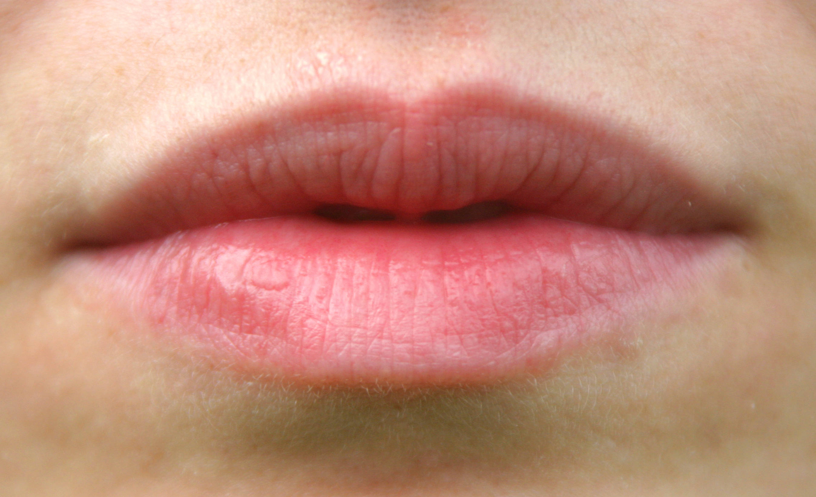 A dark spot on the lip may be a venous lake.
