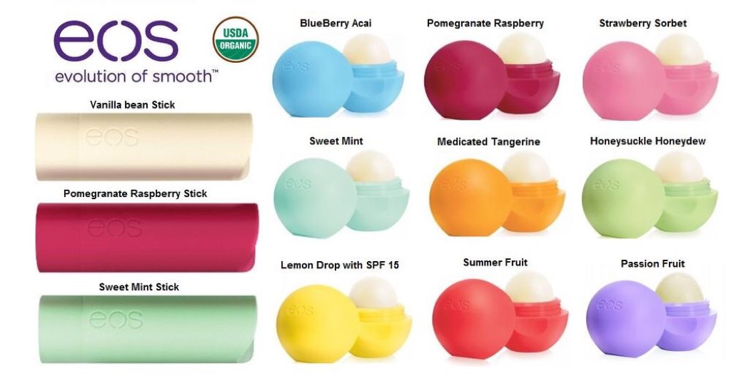 All of those little eggs. Eos lip balm flavors top: This is heaven to me. It has a zesty lemon flavor that invigorates and delights you. Eos pomegranate raspberry lip balm ;